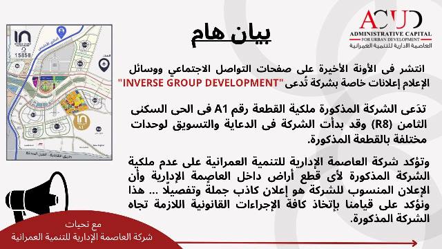 أنها تحذر من التعامل مع شركة تُدعى “INVERSE GROUP DEVELOPMENT” ،.