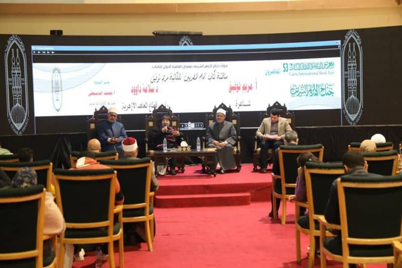 وقال الدكتور سلامة داوود، رئيس قطاع المعاهد الأزهرية، إن شيخ الأزهر يضرب المثل في القدوة والعالم العامل العابد الذي يسعى بكل جد إلى فرض منظومة سلوكية وقيمية يحترم الناس فيها بعضهم بعضًا، وأن الكتاب يسلط الضوء على جهود فضيلة الإمام الأكبر في محاربة الأفكار المتطرفة وجماعات الإرهاب وتفنيد ضلالاتهم، وقد سخرت الكاتبة والأديبة قلمها لخدمة هذه الجهود والمعاني الجليلة التي هي رسالة نبينا محمد ﷺ وينبغي على جميعًا أن نقتدي برسولنا القدوة الحسنة، واحترام العلم والعلماء وعدم إعطاء المساحات الإعلامية لمن لا علم لهم ولا يدركون قدر العلماء، فالعلماء يناقشهم العلماء، وليس أدعياء العلم.