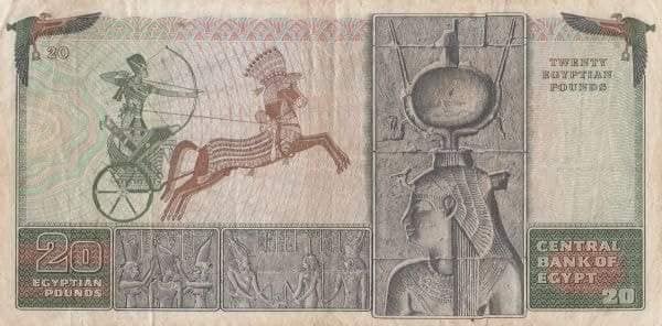 وأصدر البنك المركزي المصري عملة الـ20 جنيهًا لأول مرة في عام 1976، ليكون شكلها منذ 47 عاما، كالتالي: