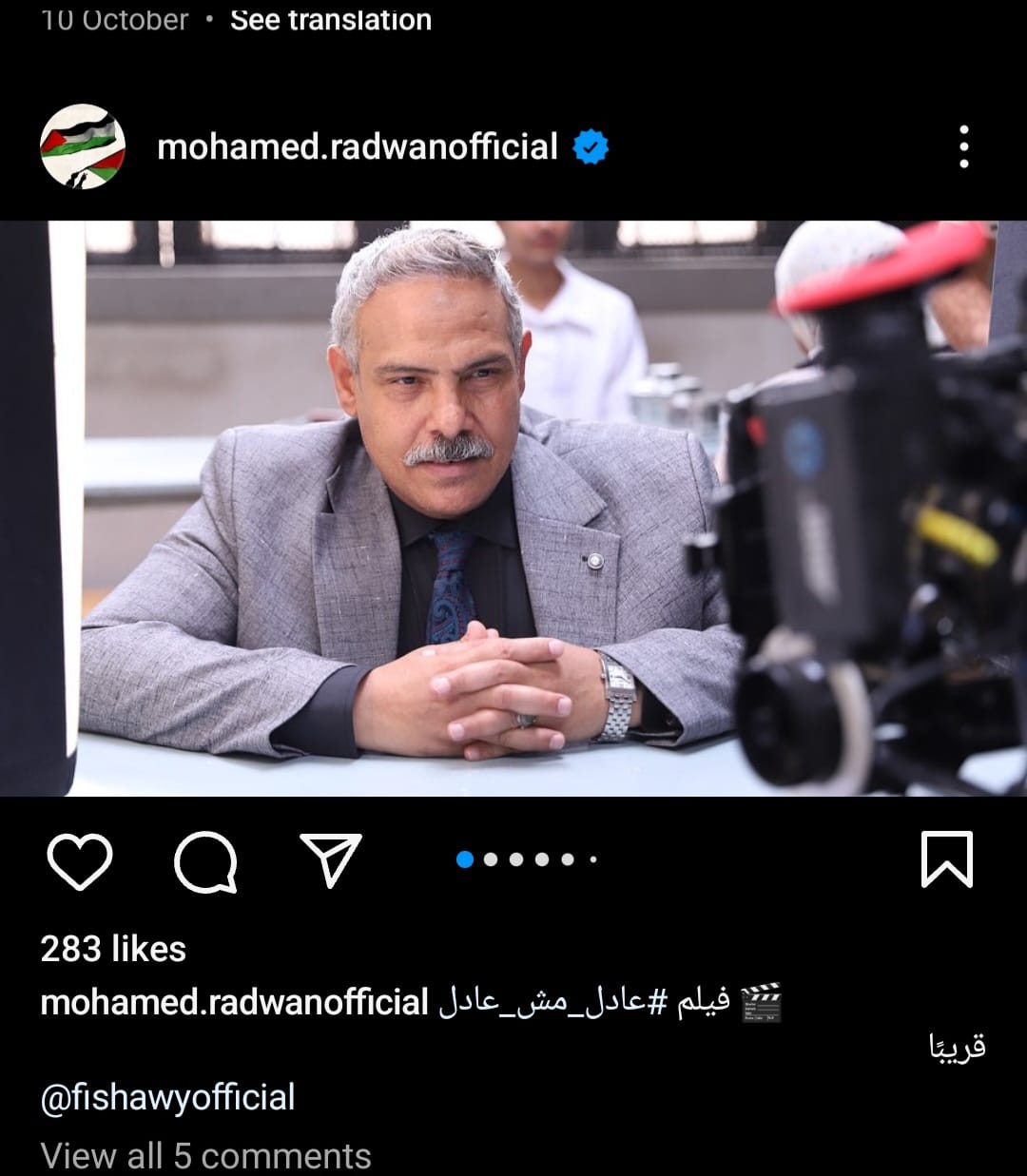 كما نشر رضوان صور من كواليس الفيلم عبر حسابه على Instagram وقال: “عادل مش عادل” قريبا.