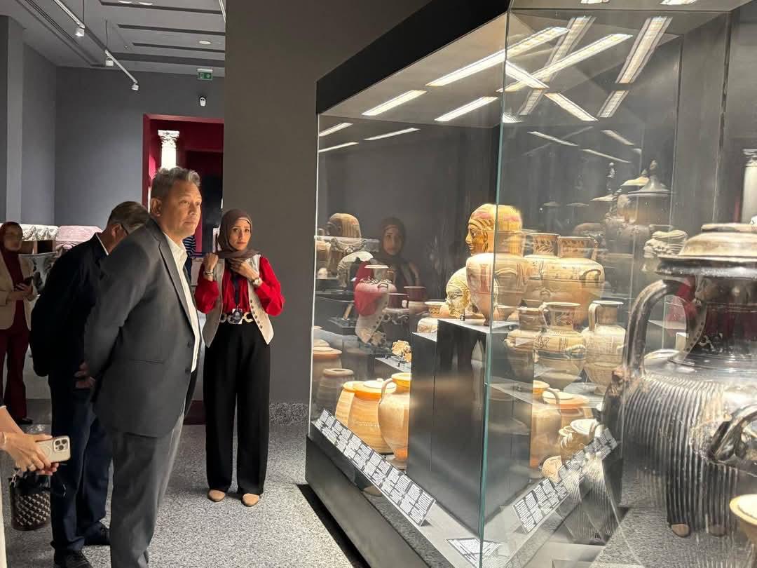 وكان في استقبالهم الدكتورة سميرة مدني وكيل المتحف للشئون الفنية والعلاقات العامة،