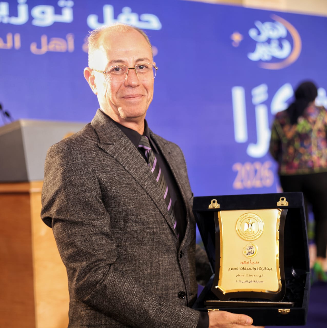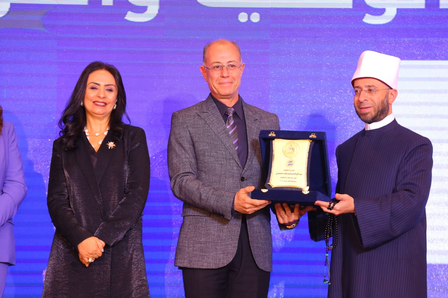 تسلم درع التكريم السيد اللواء/ محمد مصطفى، مساعد الأمين العام لبيت الزكاة والصدقات، نيابةً عن الأستاذة الدكتورة/ سحر نصر، الأمين العام لبيت الزكاة والصدقات،
