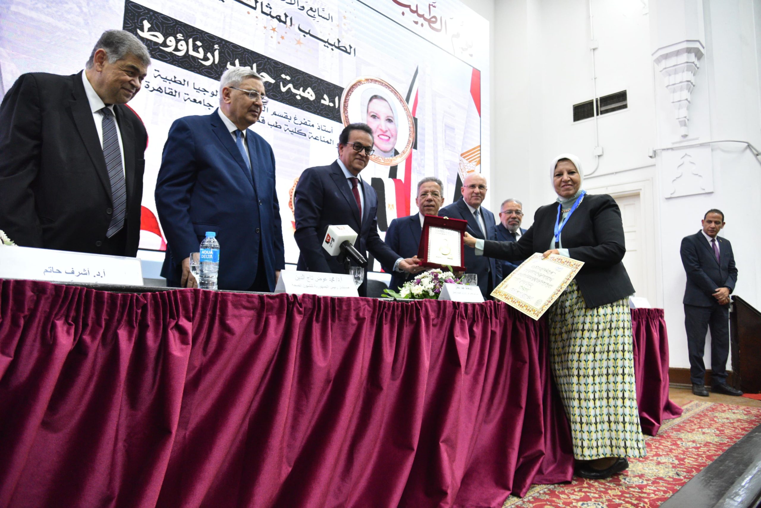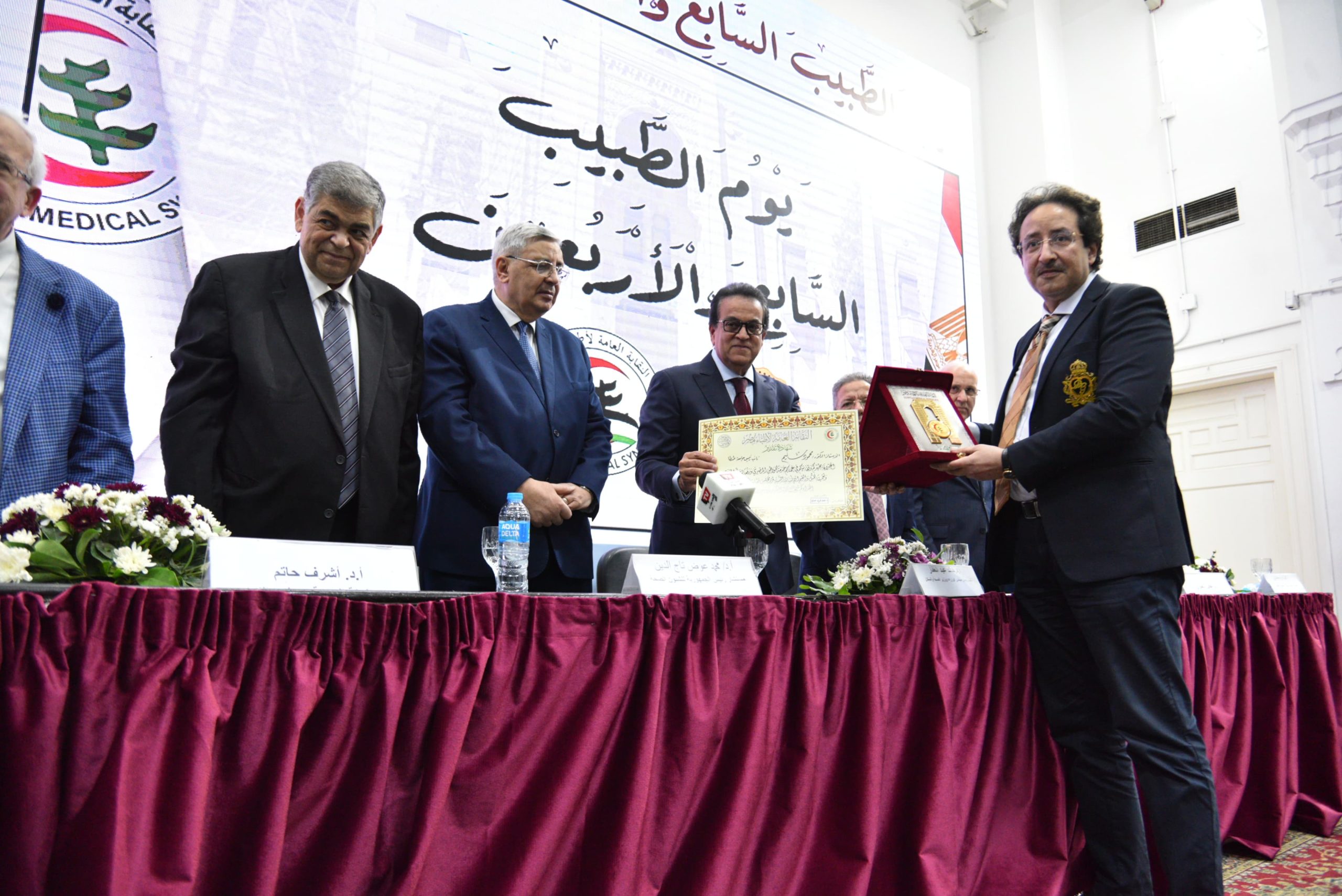 من جانبه، أعرب الدكتور أسامة عبدالحي عن شكره لوزير الصحة لمشاركته في الاحتفال، مشيرًا إلى أن وجوده في المناسبة يعكس تقديرًا رسميًا صادقًا لمهنة الطب.