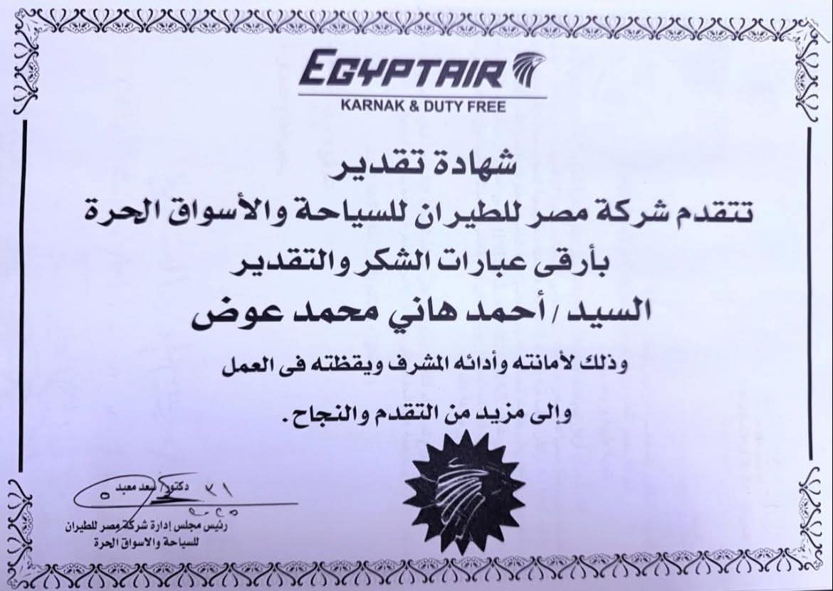 رسالة وفاء وتقدير من إدارة مصر للطيران