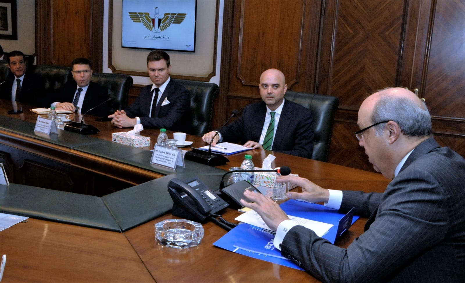 في إطار حرص وزارة الطيران المدني على تعزيز التعاون الدولي مع المنظمات العالمية المتخصصة، التى تعمل تحت مظلة الأمم المتحدة ، استقبل الدكتور سامح الحفني وزير الطيران المدني، بمقر ديوان عام الوزارة، السيد كارلوس أوليفر، رئيس مكتب المنظمة الدولية للهجرة (IOM) لدى جمهوريه مصر العربيه ، والسيد ميخال نوبيس، مسؤول برنامج الهجرة وحوكمة الحدود بالمنظمة والوفد المرافق لهما ،، حيث يأتى هذ اللقاء لبحث سبل التعاون المشترك في عدد من الموضوعات الهامة، وعلى رأسها تطوير منظومة المعلومات المسبقة عن المسافرين وتبادل الخبرات الفنية والتدريبية.