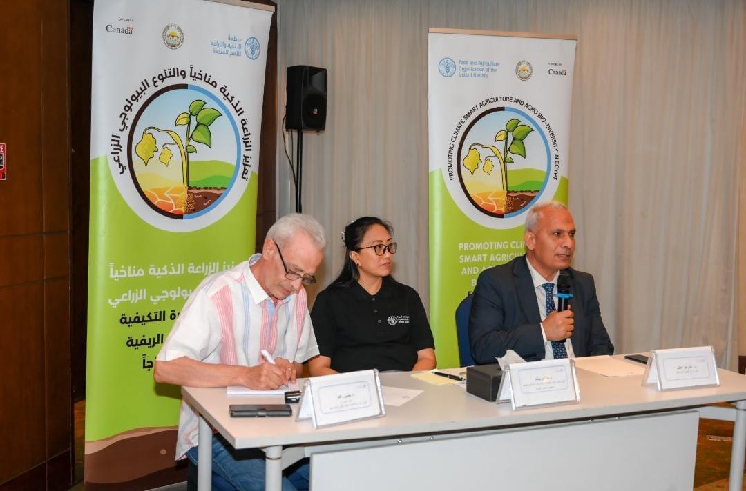 وعدد مديري المعاهد البحثية ونخبة من الباحثين المتخصصين بهدف تعزيز التكيف المناخي ورفع الإنتاجية وتحسين التنوع البيولوجي وذلك في 36 قرية في محافظات البحيرة، وكفر الشيخ، وأسوان وتطبيق حلول مستدامة قائمة على الطبيعة والتكنولوجيا، تعزز من مرونة المجتمعات وتحقق تنمية شاملة للنهوض بانتاجيتها من المحاصيل الحقلية والبستانية.