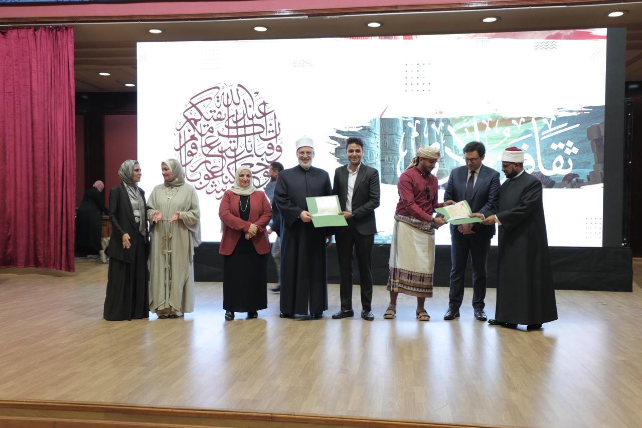 كرّم فضيلة أ.د/ الضويني، وكيل الأزهر الشريف، والدكتور أحمد هنو، وزير الثقافة، الطلاب الفائزين في الموسم الثاني من مسابقة “ثقافة بلادي”، والتي شهدت مشاركة واسعة من طلاب يمثلون 60 دولة من مختلف أنحاء العالم.
