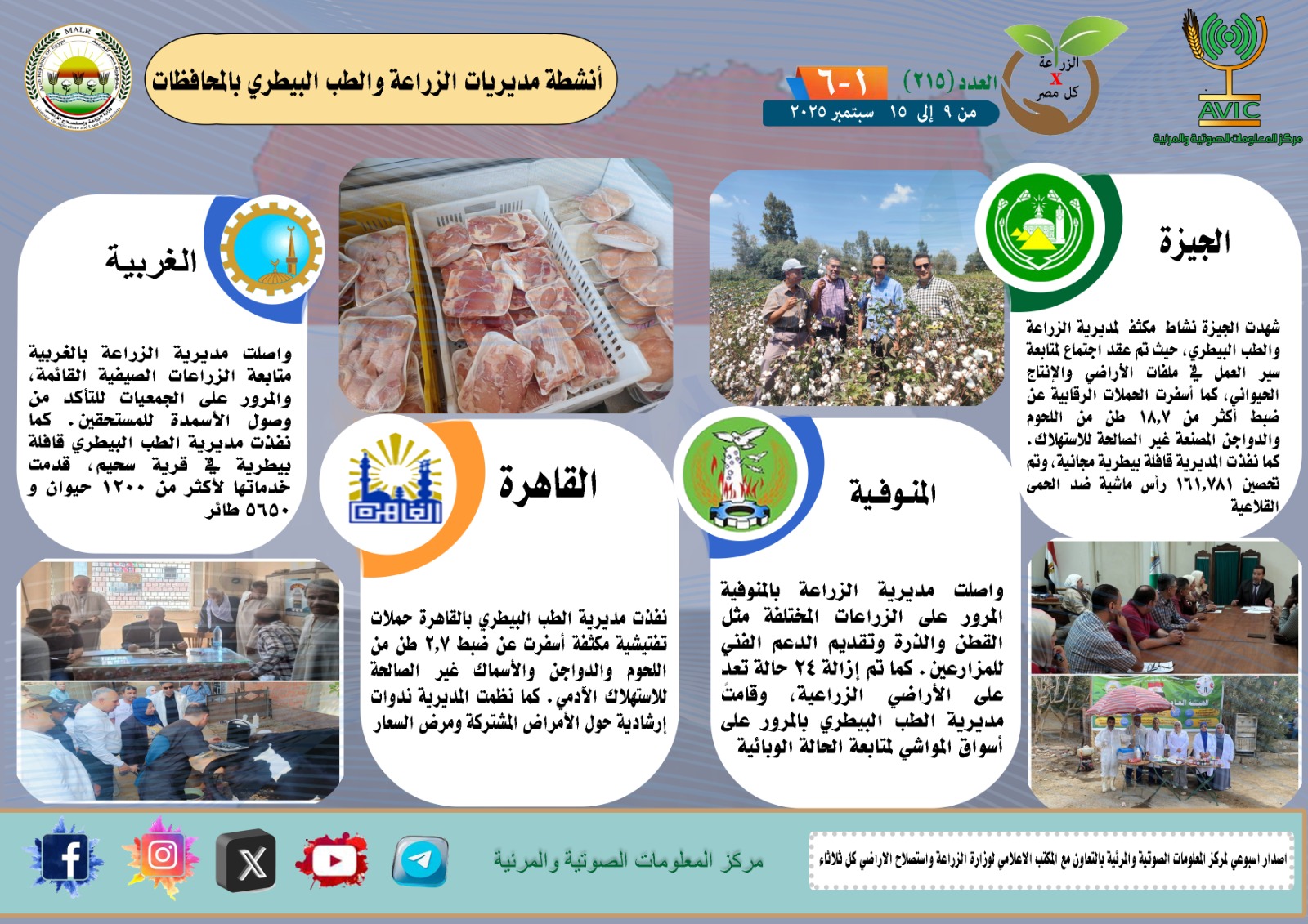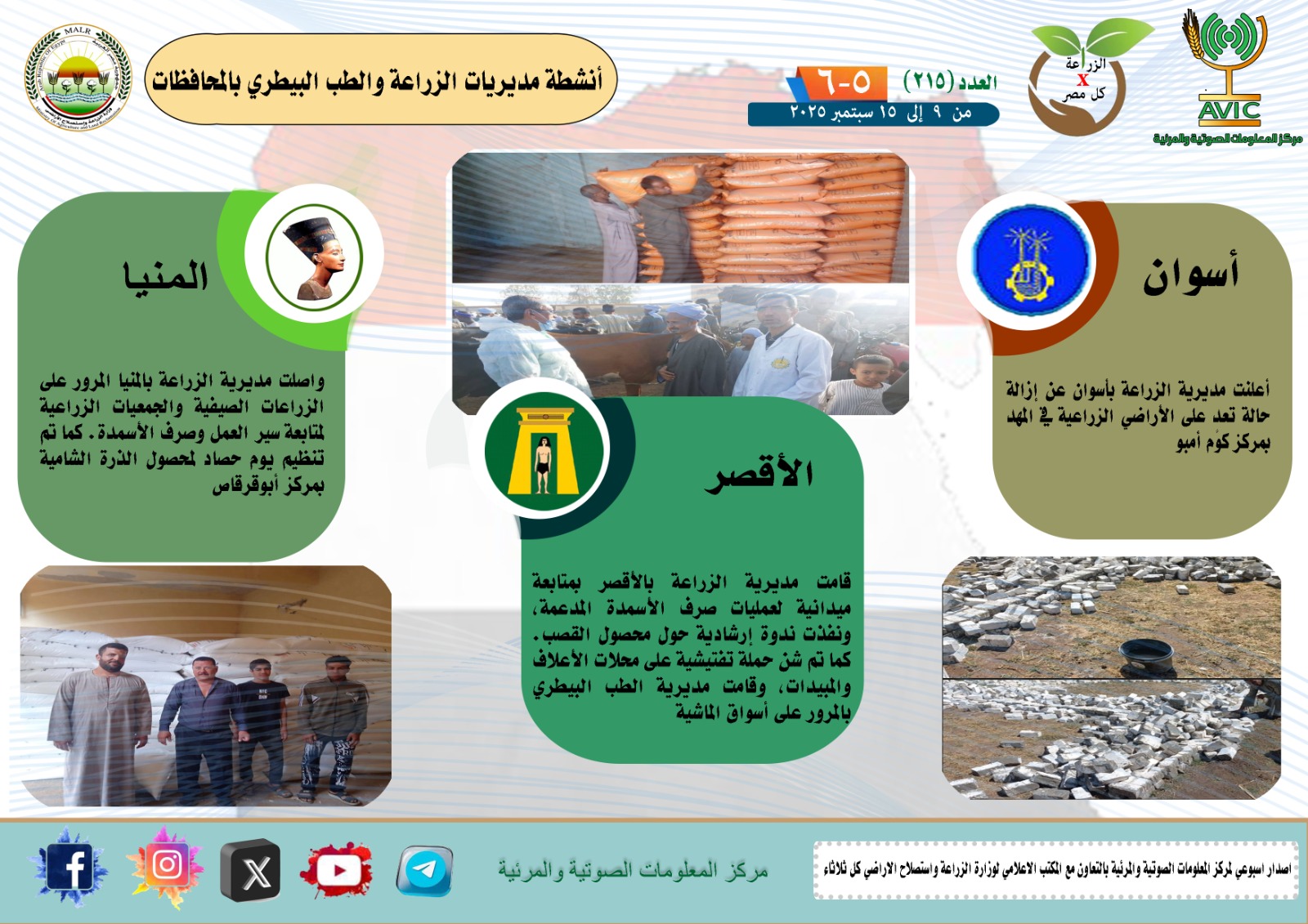 أصدر مركز المعلومات الصوتية والمرئية التابع لوزارة الزراعة واستصلاح الأراضي، والمكتب الاعلامي للوزارة، العدد رقم 215