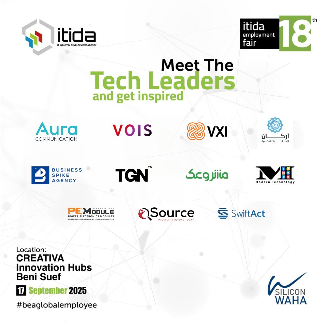 نظمت هيئة تنمية صناعة تكنولوجيا المعلومات (إيتيدا) فعاليات الملتقى التوظيفي الثامن عشر بمركز إبداع مصر الرقمية (كريتيفا) بالمنطقة التكنولوجية بمدينة بني سويف الجديدة، يوم 17 من سبتمبر الجاري، وذلك بهدف استعراض فرص العمل بقطاع تكنولوجيا المعلومات والاتصالات وإتاحتها أمام شباب محافظة بني سويف والمحافظات المجاورة.