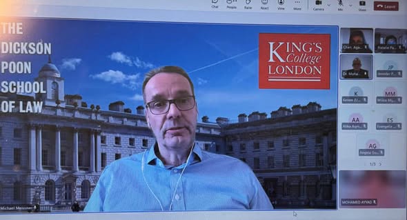 محاضرة افتراضية أمام المشاركين في البرنامج التدريبي الذي تنظمه كلية ديكسون بوون للقانون