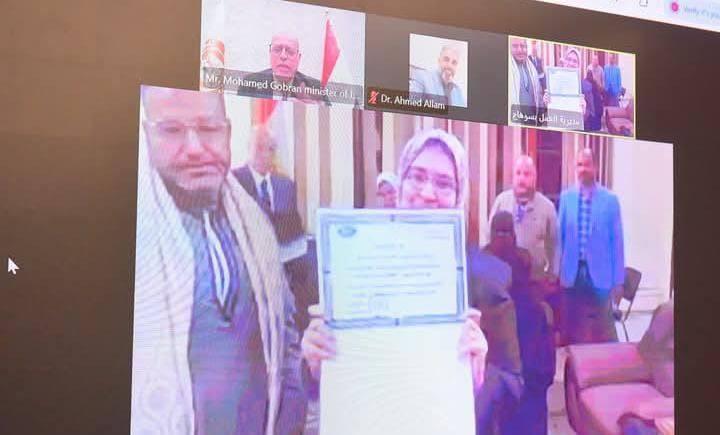 شهد وزير العمل محمد جبران، اليوم، عن طريق “الفيديو كونفرانس”، قيام مديريات العمل بتسليم الإعانات والمستحقات