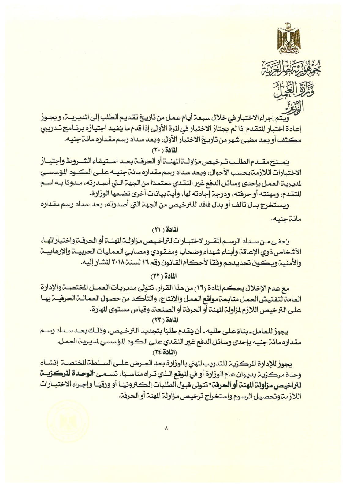 قرار وزير العمل 266 لسنة 2025: قواعد قياس المهارات وترخيص المهن والحرف في مصر