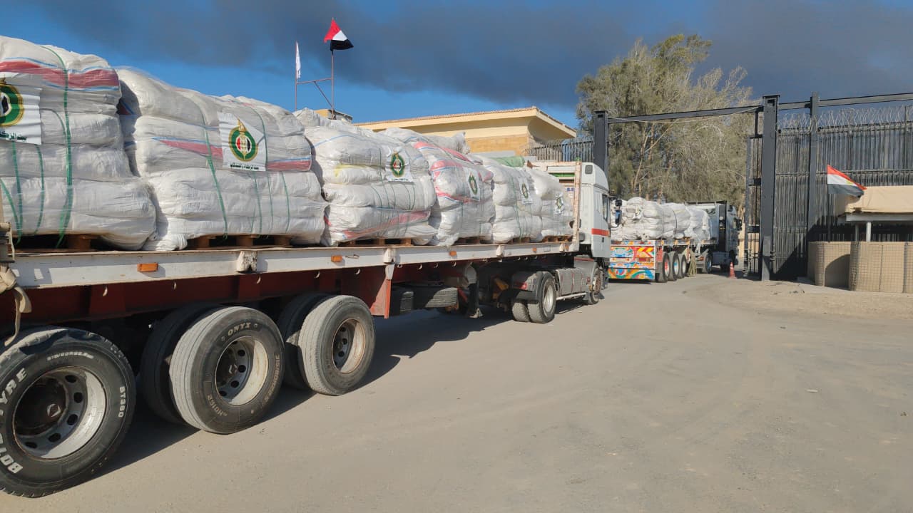 أعلن «بيت الزكاة والصدقات» تحت إشراف فضيلة الإمام الأكبر الأستاذ الدكتور أحمد الطيب شيخ الأزهر، دخول القافلة الإغاثية الثالثة عشر إلى قطاع غزة، فجر اليوم الأربعاء عبر ميناء رفح البري بين الحدود المصرية الفلسطينية؛ والتي تحمل على متنها عشرات الآلاف من الخيام المجهزة والمواد الغذائية، والمياه النقية، والمستلزمات الطبية والمعيشية، بالإضافة إلى ألبان الأطفال، والحفاضات، والأدوية، ومستلزمات العناية الصحية، تمهيدًا لتوزيعها على أشقائنا الفلسطينيين الذين دمر الاحتلال بيوتهم ومدنهم وباتوا ينامون في الشوارع بلا مأوى.