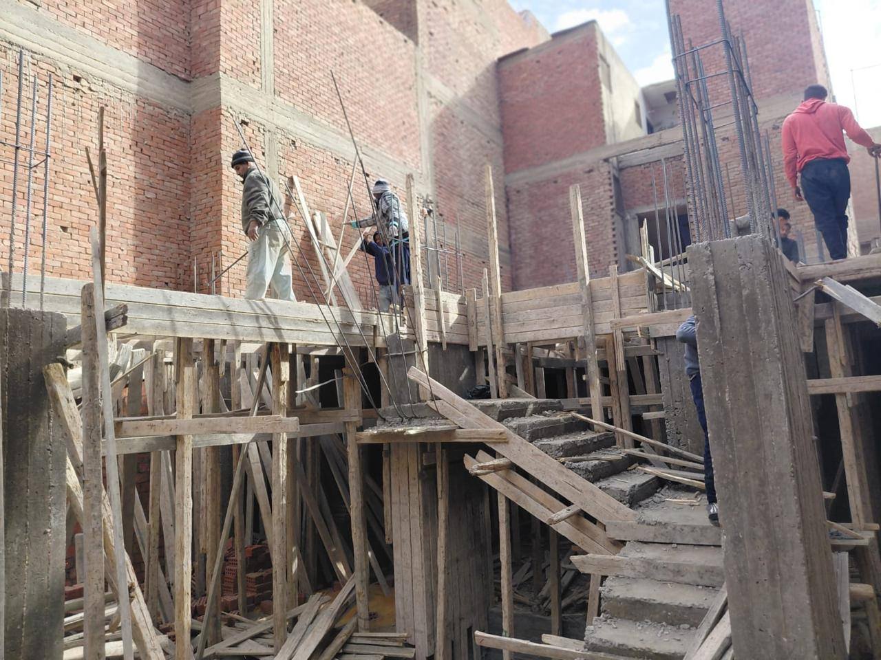 بدون ترخيص في 4 عقارات بمنطقة النهضة، وتم إيقاف الأعمال وإزالة الأدوار المخالفة ومصادرة مواد البناء.