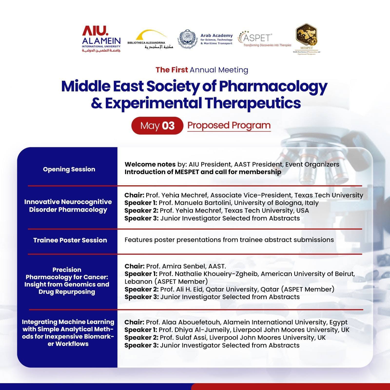الأول لجمعية الشرق الأوسط لعلم الأدوية والعلاجات التجريبية (MESPET)”، بالتعاون مع
