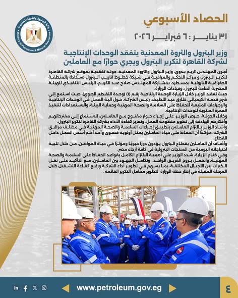 وزارة البترول : الحصاد الأسبوعي حول أبرز أنشطة الوزارة خلال الأسبوع المنقضي