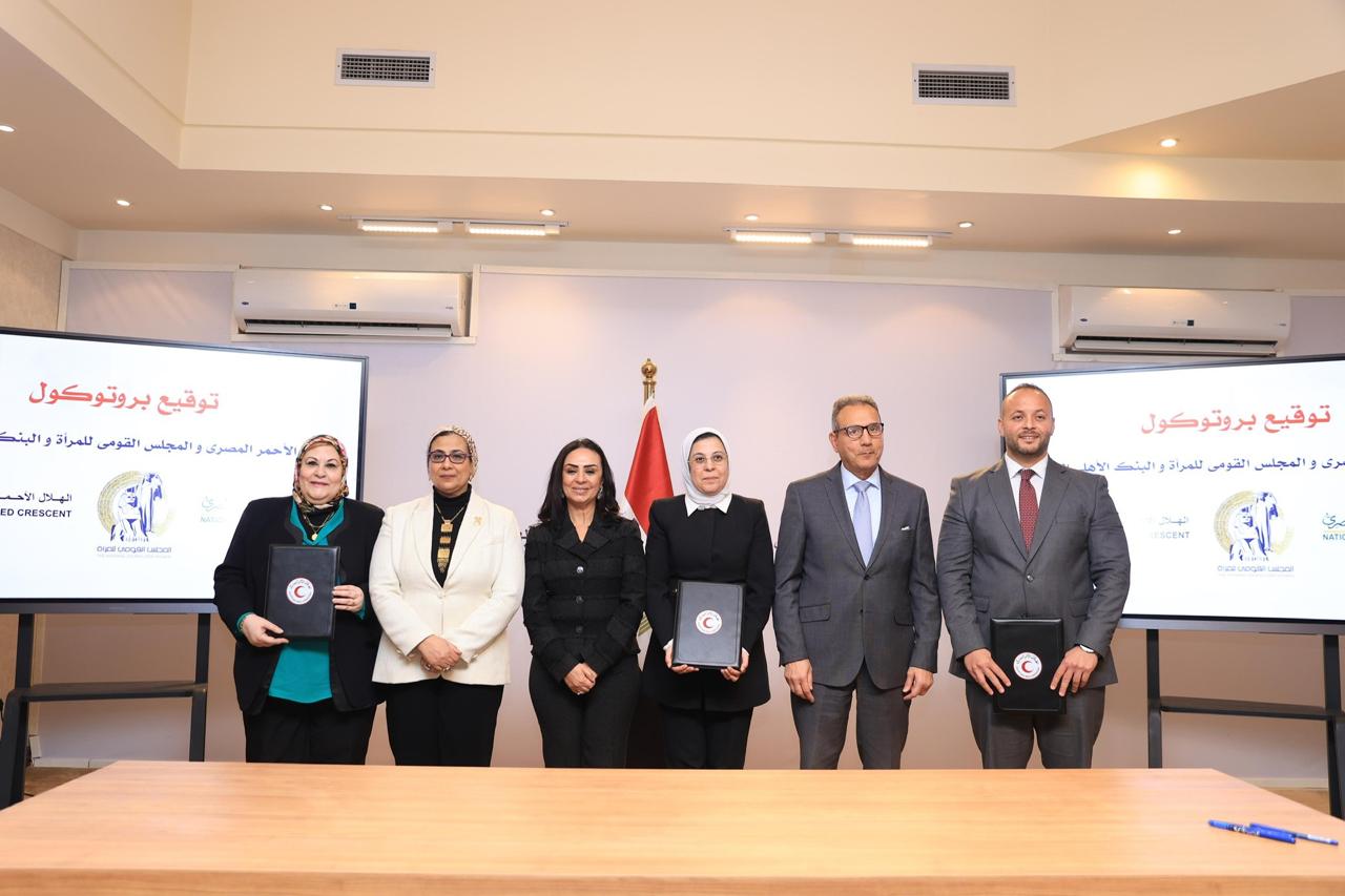 وقع البنك الأهلي المصري بروتوكول تعاون ثلاثي مع الهلال الأحمر المصري والمجلس القومي للمرأة،