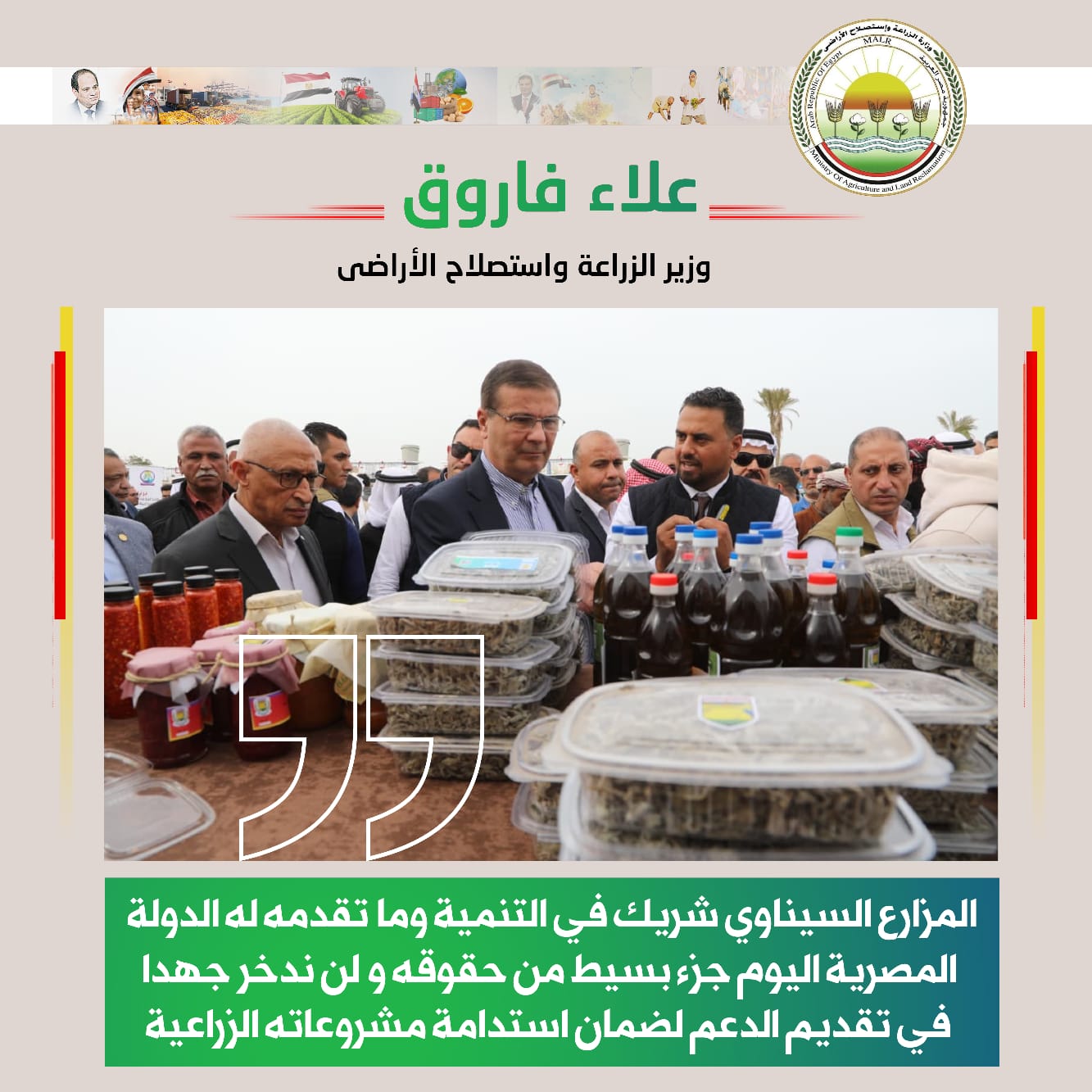 أجرى السيد علاء فاروق، وزير الزراعة واستصلاح الأراضي،زيارة ميدانية لمحافظة شمال سيناء،