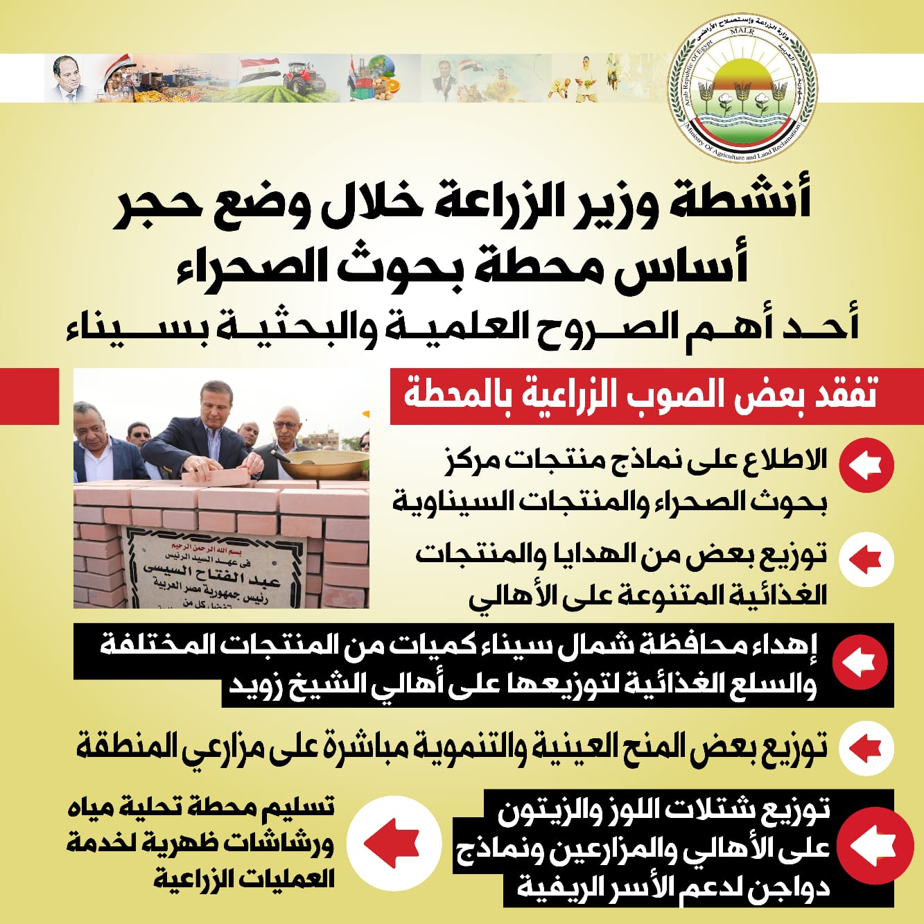استهل وزير الزراعة جولته بوضع حجر الأساس لإعادة تأهيل محطة بحوث الصحراء بالشيخ زويد،
