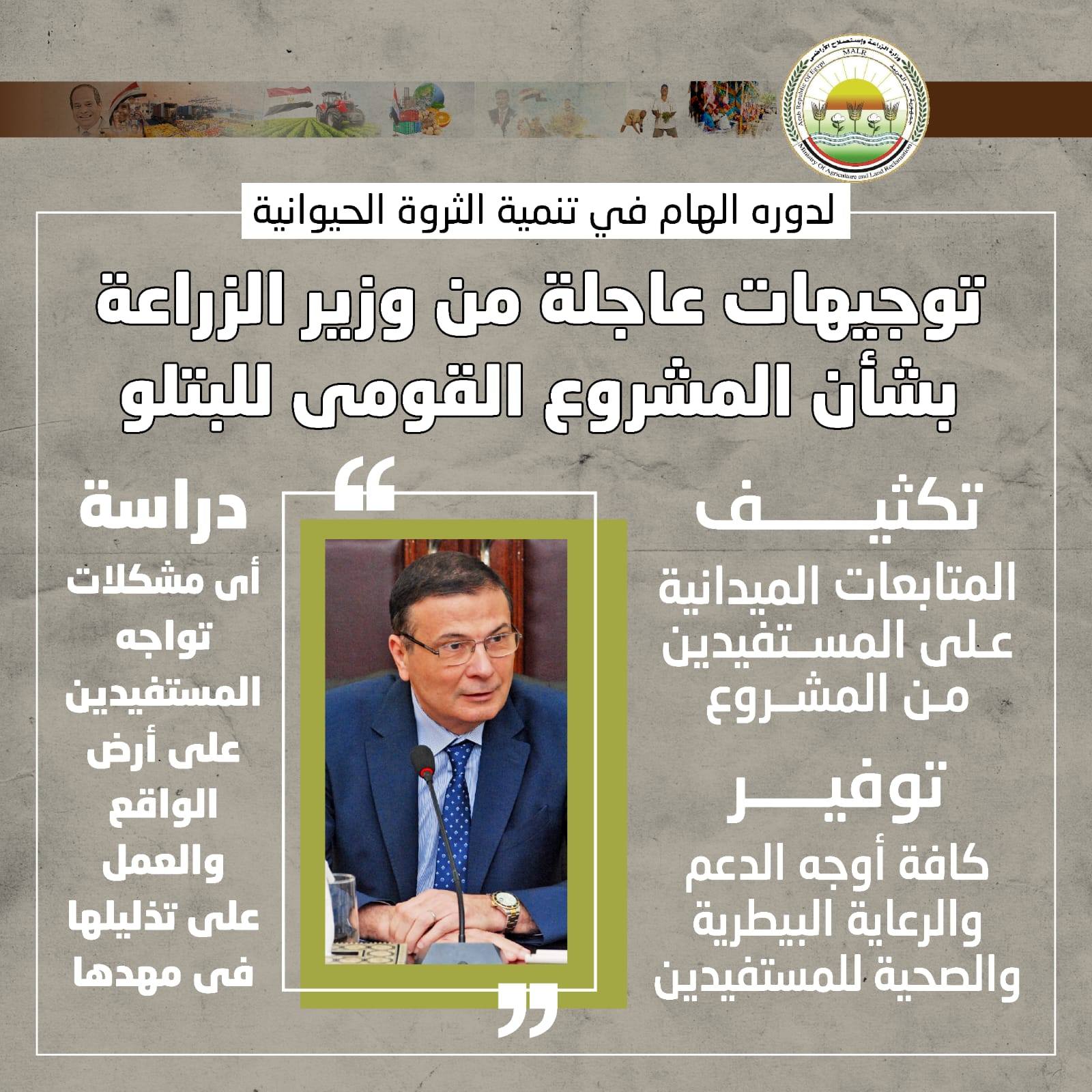 أعلنت وزارة الزراعة واستصلاح الأراضي عن موافقة مجلس إدارة المشروع القومي لإحياء البتلو