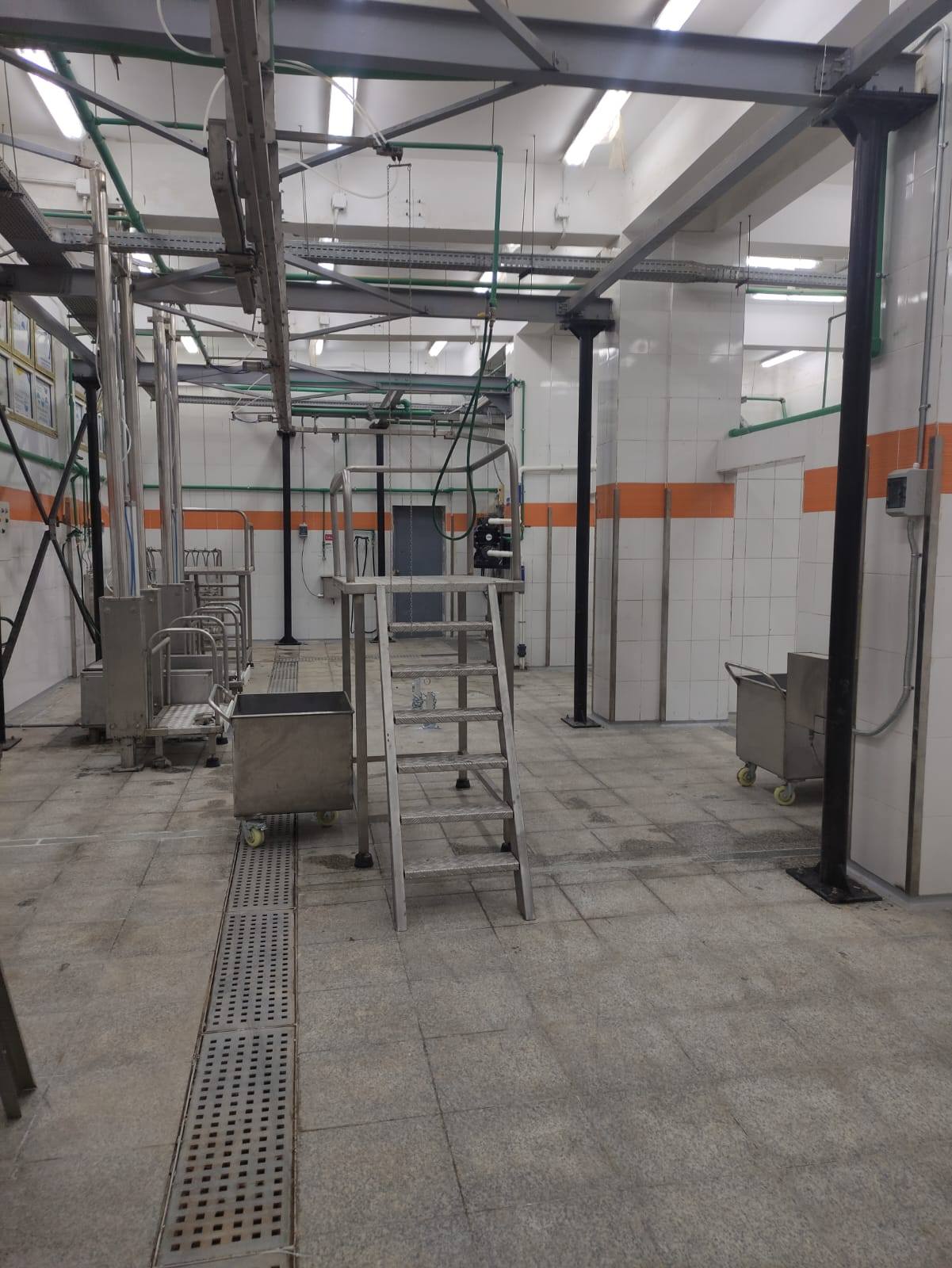مثل خط تعليق وجلاده وثلاجات لحفظ اللحوم كما تم تخصيص كرنتينه للحيوانات للتأكد