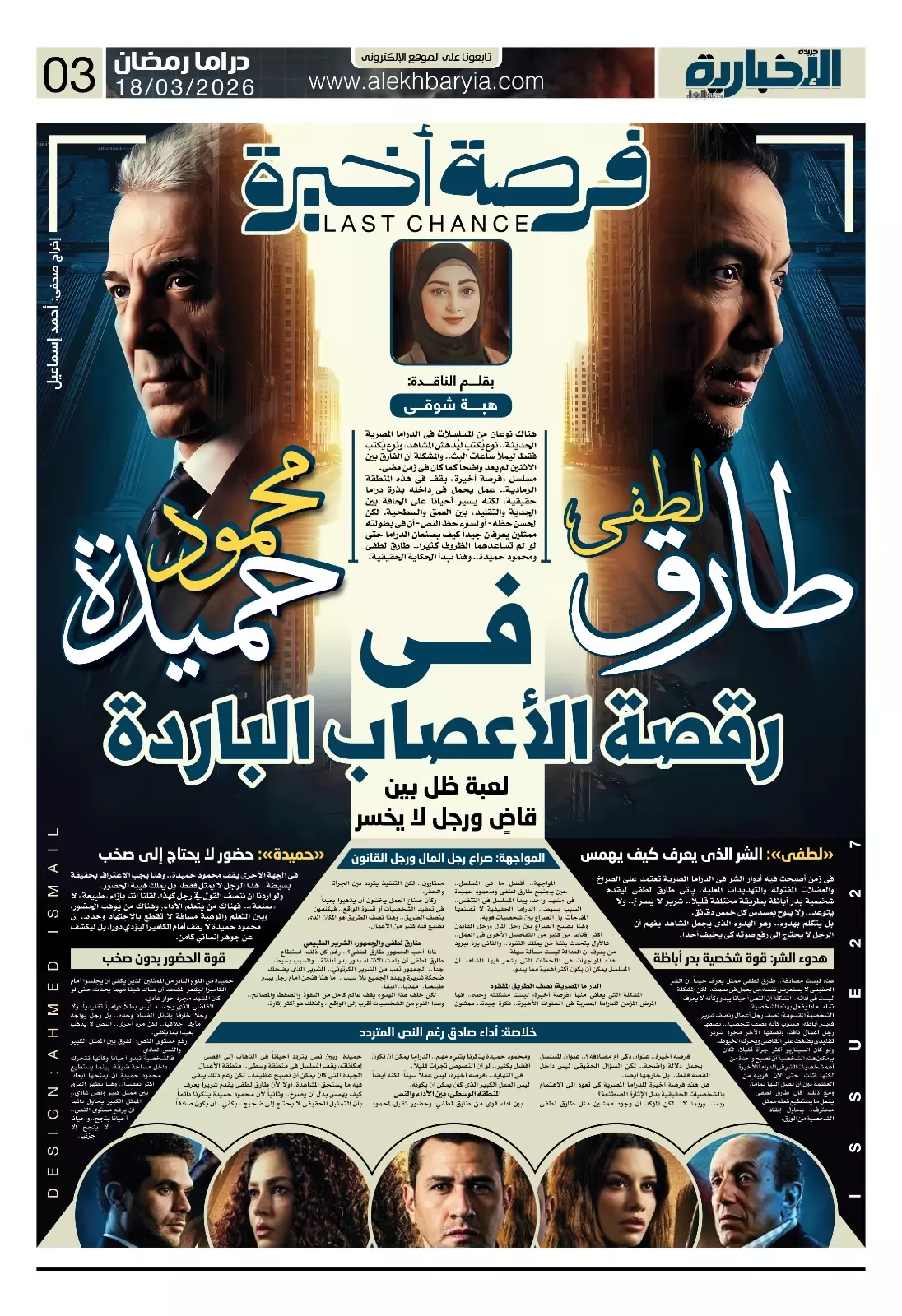 أولاً لأن طارق لطفي يقدم شريراً يعرف كيف يهمس بدل أن يصرخ.. وثانياً لأن محمود حميدة يذكرنا دائماً بأن التمثيل الحقيقي لا يحتاج إلى ضجيج.. يكفي.. أن يكون صادقاً.