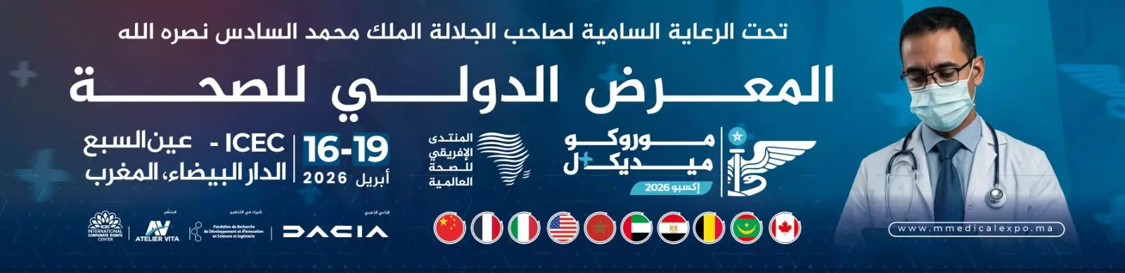 تحت الرعاية السامية لصاحب الجلالة الملك محمد السادس، تنعقد الدورة الخامسة من معرض المغرب للطب 2026 (Morocco Medical Expo) خلال الفترة من 16 إلى 19 أبريل بالمركز الدولي للمعارض والملتقيات (ICEC) بعين السبع بالدار البيضاء، مؤكدًا مكانة الحدث كمنصة استراتيجية تجمع الفاعلين الرئيسيين في القطاع الصحي على المستويين الوطني والدولي.