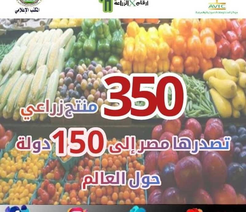 نشر مركز المعلومات الصوتية والمرئية بوزارة الزراعة واستصلاح الأراضي، عدد جديد من اصداره الرابع “أرقامX الزراعة”، أشار خلاله إلى أن عدد المنتجات الزراعية التي تصدرها مصر إلى الخارج، أكثر من ٣٥٠ منتج زراعي كما بلغ عدد الدول التي تفتح أسواقها أمام الحاصلات والمنتجات الزراعية حوالي ١٥٠ دولة حول العالم. وتشمل أهم الحاصلات الزراعية التي تصدرها […]