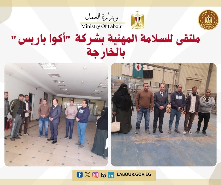 عقدت مديرية العمل بالوادي الجديد ندوة حول السلامة والصحة المهنية بشركة “أكوا باريس”