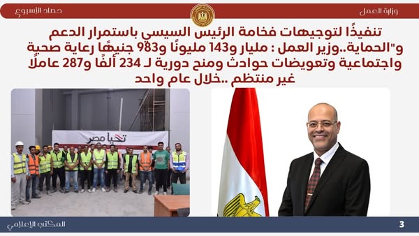 وقال مدير المديرية أن توقيع العقود يأتي فى ضوء تنفيذ توجيهات وزير العمل محمد جبران لحفظ التوازن بين طرفي العملية الإنتاجية في الحقوق والواجبات وبمايخدم العملية الإنتاجية في ظل المتغيرات الاقتصادية الحالية، كما ِأشار مدير المديرية إلى مناقشة عدد من الموضوعات الهامة لتعزيز علاقات العمل واستقرار العلاقة التعاقدية وتحسين بيئة العمل، والاتفاق على إتمام بروتوكول لتدريب شباب بورسعيد من الجنسين، كما تم تفقد مواقع الإنتاج و مقابلة عدد من العمال بأقسام الإنتاج بالمصنع.