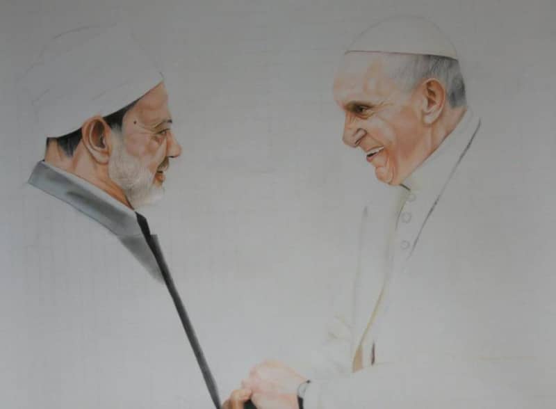 الإمام الأكبر «أبي» وأحب أن أرسمه.. فتاة الأزهر الموهوبة تعرض مراحل رسم شيخ الأزهر بمعرض الإسكندرية للكتاب