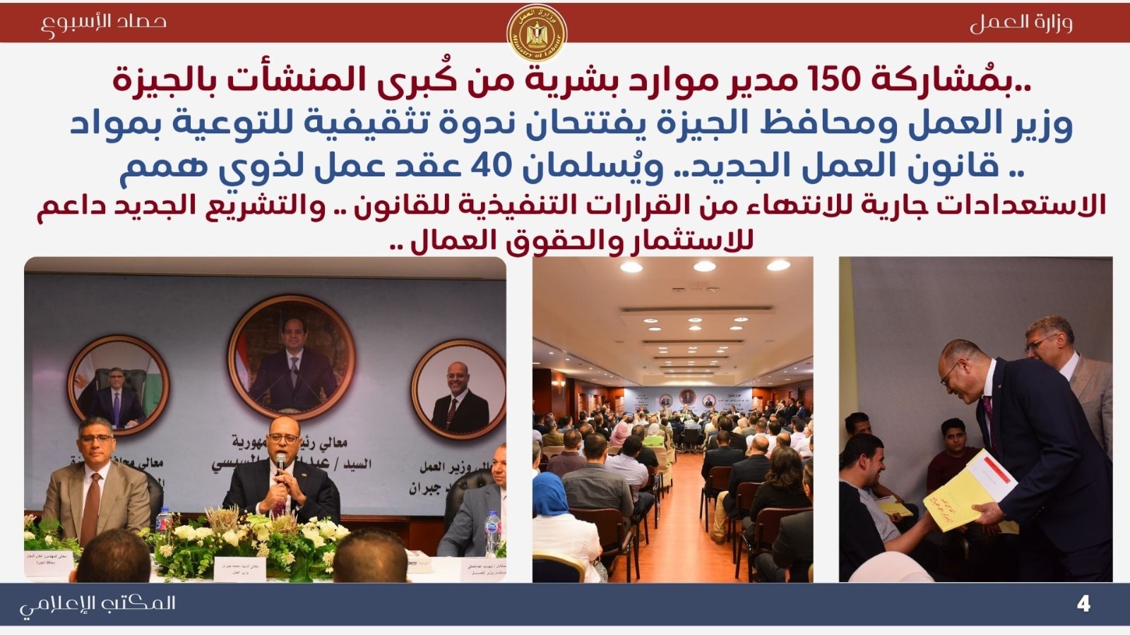 وأكد وزير العمل أن مفتش العمل يُعد أحد الأعمدة الرئيسية لإنفاذ التشريعات العمالية على أرض