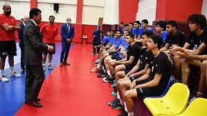 وزير الرياضة يلتقى لاعبى منتخب الطائرة قبل سفرهم إلى سلوفينيا للمشاركة فى بطولة العالم
